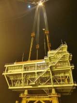11月10日,中國鐵建港航局-山東能源渤中海上風電B場址工程海上升壓站導管架基礎(chǔ)施工和升壓站上部組塊...